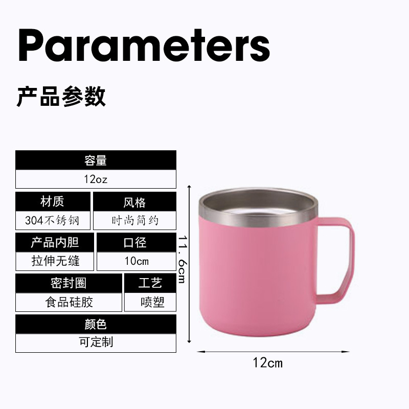 跨境新款高颜值批发304不锈钢保温杯12oz马克杯户外咖啡杯带手柄