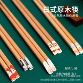 日式指甲筷子尖头榉木五色分餐一人一筷卡通礼盒套装餐具ins风