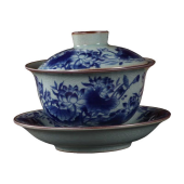 景德镇陶瓷寒窑赋青花主人杯开片茶托老陶泥办公中式家用茶杯垫子