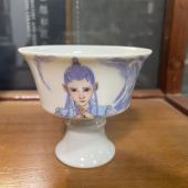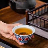 景德镇青花万花主人杯老陶泥茶杯陶瓷家用单杯开片可养个人品茗杯