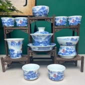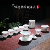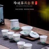德化白瓷冰种玉瓷功夫茶具窑变流釉水墨中国风套装羊脂玉盖碗茶壶