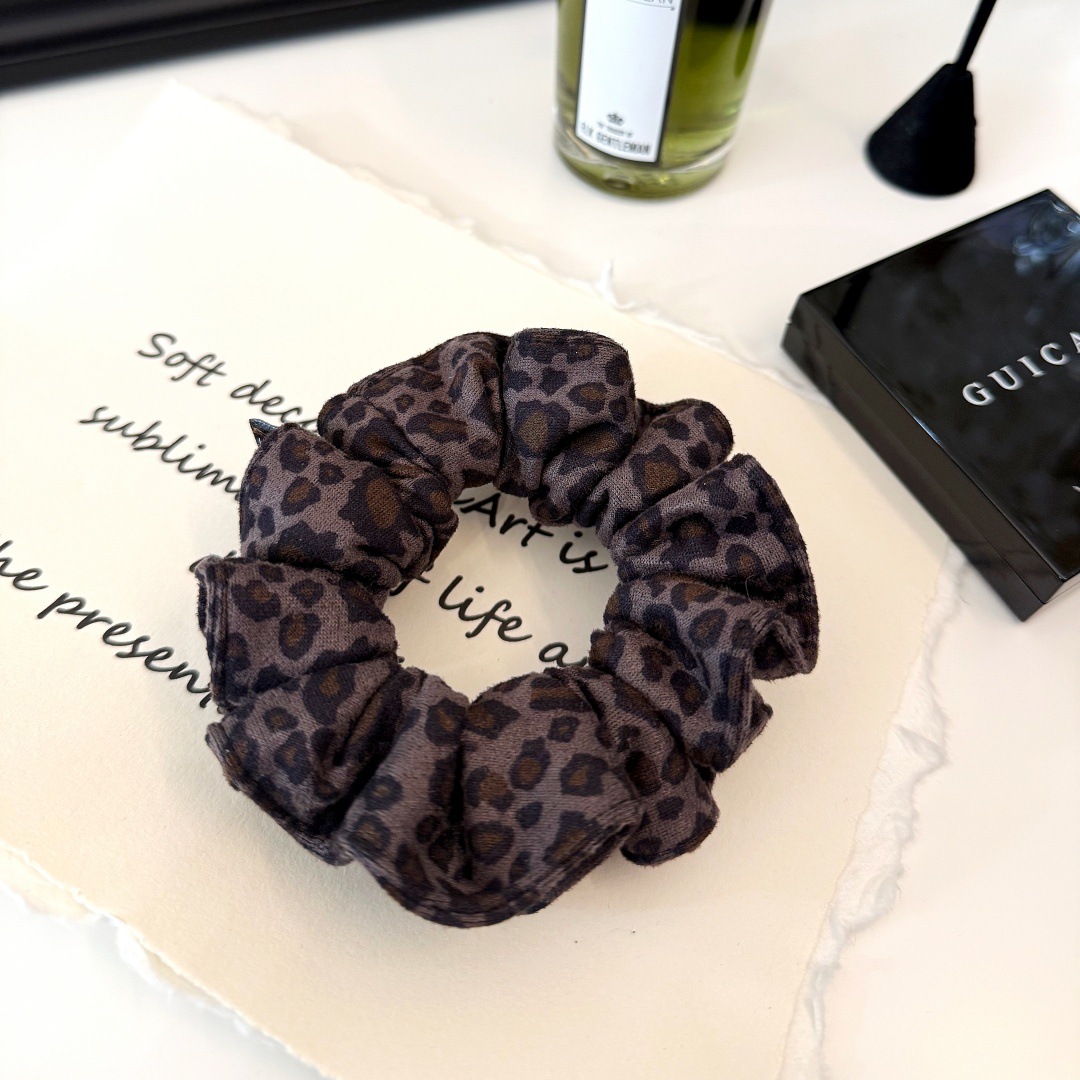 时髦豹纹印花大肠发圈女高级感发绳头绳丸子头扎发橡皮筋头花发饰