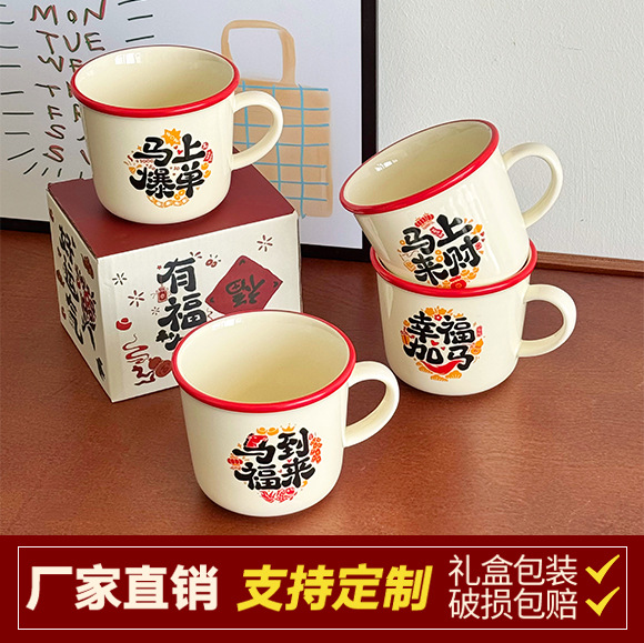 马上来财陶瓷定制logo马克杯元旦春节伴手礼高颜值水杯年会礼品