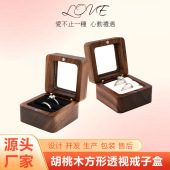 厂家批发胡桃木首饰盒木质戒子盒耳钉对戒收纳送礼情人节礼物女士