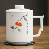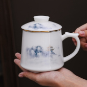 上禹茶杯羊脂白瓷马克杯陶瓷茶水分离泡茶大容量杯子个人专用水杯