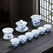 景德镇陶瓷功夫茶具青花玲珑盖碗茶杯高档家用办公室泡茶礼盒套装