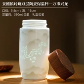 景德镇陶瓷保温杯玲珑纯瓷内胆带盖车载茶杯高档男女双层养生水杯