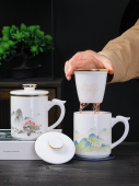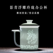 景德镇陶瓷茶杯影青玲珑过滤家用办公室带盖茶水分离高端杯子礼品