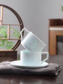 第一餐景德镇釉下彩影青玲珑瓷咖啡杯陶瓷茶杯ins创意咖啡杯带碟