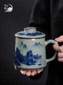 景德镇青花陶瓷泡茶茶杯茶水分离办公过滤带盖瓷杯子家用带把单杯