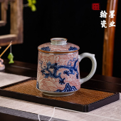 景德镇陶瓷老陶泥釉里红海水龙办公杯茶水分离杯家用大容量马克杯
