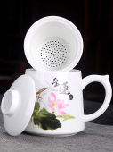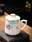 德化羊脂玉瓷马克杯带盖大容量茶水分离陶瓷水杯泡茶杯办公杯定制