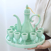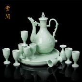 中式酒具陶瓷酒壶敬酒杯宫廷高脚杯青瓷家用小酒盅仿古结婚分酒器
