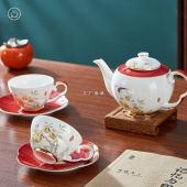 中式轻奢金边咖啡杯碟套装礼盒装送礼自用骨瓷下午茶茶具小奢华杯