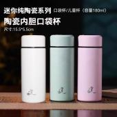 陶瓷内胆水杯非涂层景德镇真陶瓷小巧便携泡口袋迷你上学儿童水杯