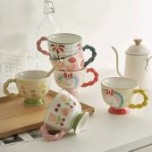 陶瓷手绘浮雕早餐杯马克杯大容量少女心可爱创意礼物牛奶杯咖啡杯