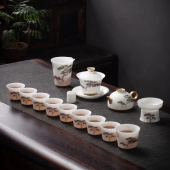 15头新品璞玉问松茶具玉瓷盖碗礼盒装茶具套装领导长辈轻奢高档