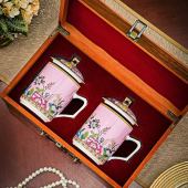 景德镇陶瓷茶杯描金珐琅彩喝水杯子带盖骨瓷水杯办公杯送礼礼盒装