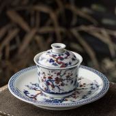 2025新款青花鎏银功夫茶具松竹梅泡茶盖碗壶承套组家用办公礼盒