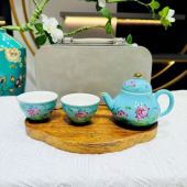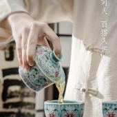 高档珐琅彩旅行茶具套装便携式快客杯户外露营一壶三杯陶瓷泡茶器