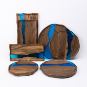 黑胡桃木托盘圆定制相思木实木河流树脂茶盘点心西餐服务菜板批发