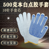 500克10针棉纱PVC单面点胶滴塑手套本白手套劳保防滑耐磨工作手套