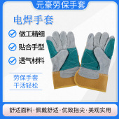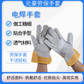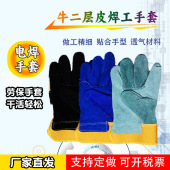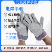 短款焊工手套牛二层皮驳掌工地手套耐温隔烫隔热劳保电焊作业手套