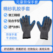 灰纱蓝胶乳胶皱纹浸渍手套止滑涤棉劳保手套防割起皱检查劳动手套
