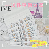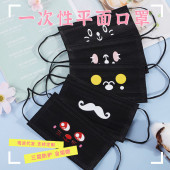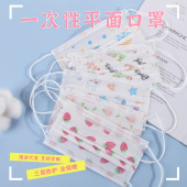 成人白色小清新印花平面口罩一次性三层水刺无纺布口罩印表情防护