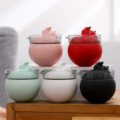 陶瓷马克杯家用内胆带盖过滤茶杯茶水分离办公杯木柄色釉水杯礼品