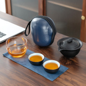 便携式旅行茶具小套装户外玻璃快客杯一壶三杯车载泡茶壶茶杯防烫