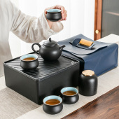 旅行茶具小套装办公家用陶瓷泡茶壶户外小茶盘便携包商务礼品logo