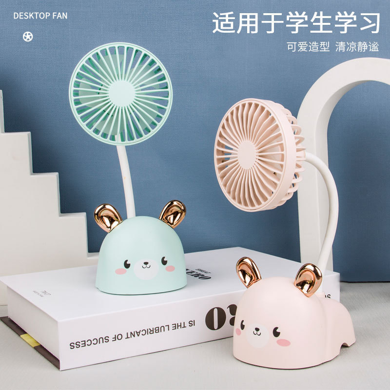 933简约迷你充电USB电风扇学生卡通兔子小鹿耳朵办公手持大风力