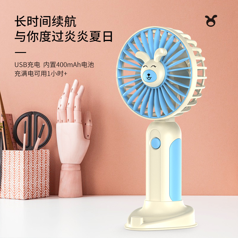 新款手持卡通萌宠儿童学生迷你灯光礼品风扇手机支架桌面办公风扇