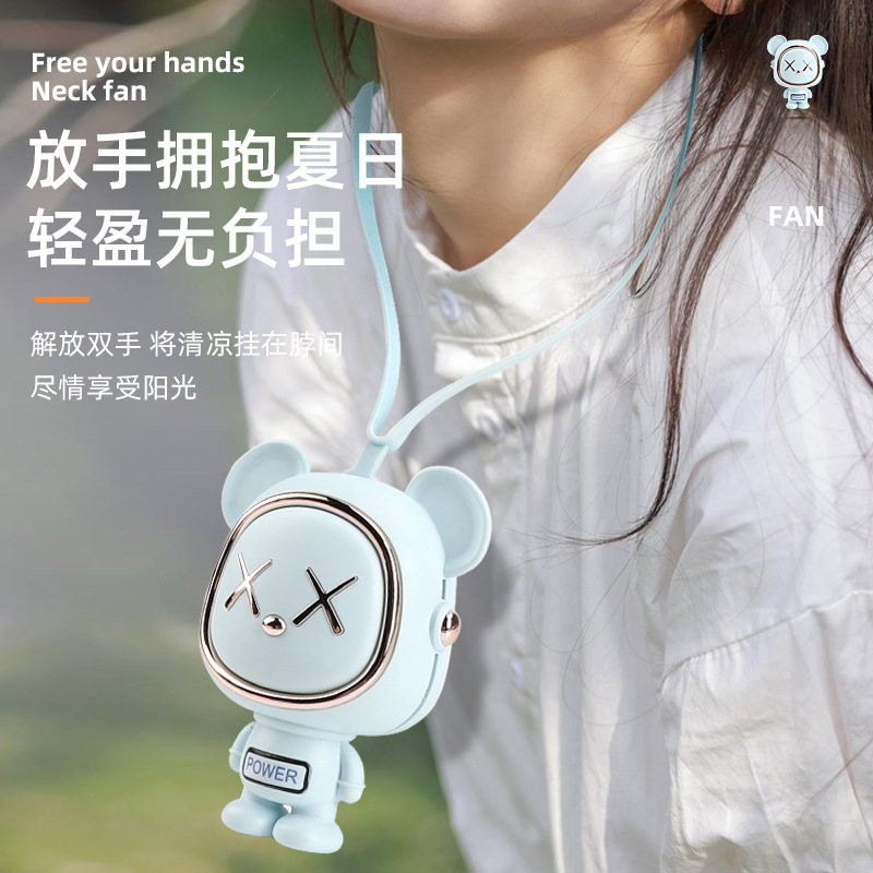 太空熊挂脖无叶风扇usb充电涡轮创意手持学生礼品便携迷你小风扇