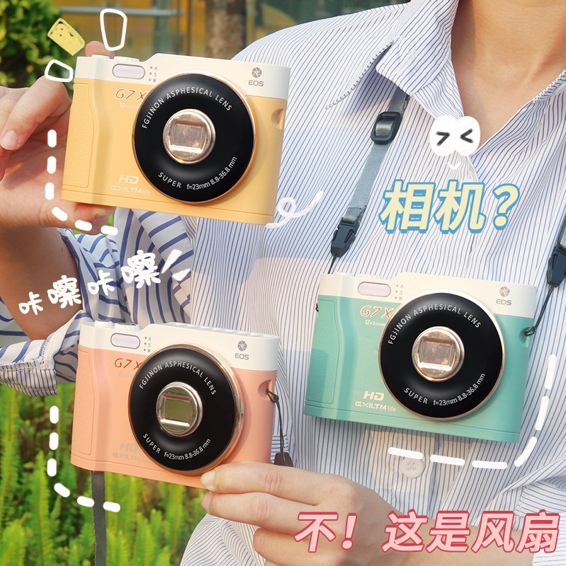 夏日户外挂脖相机小风扇 迷你仿真照相机充电风扇USB充电风扇