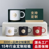 爆款商务礼品复古铜牌铜章水杯马克杯 轻奢星巴风杯子陶瓷杯定制