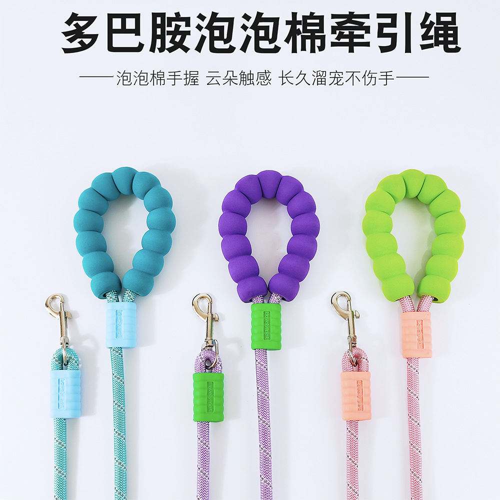 狗狗牵引绳可调节不勒手跨境新款泡泡棉遛狗绳 宠物牵引绳批发p绳