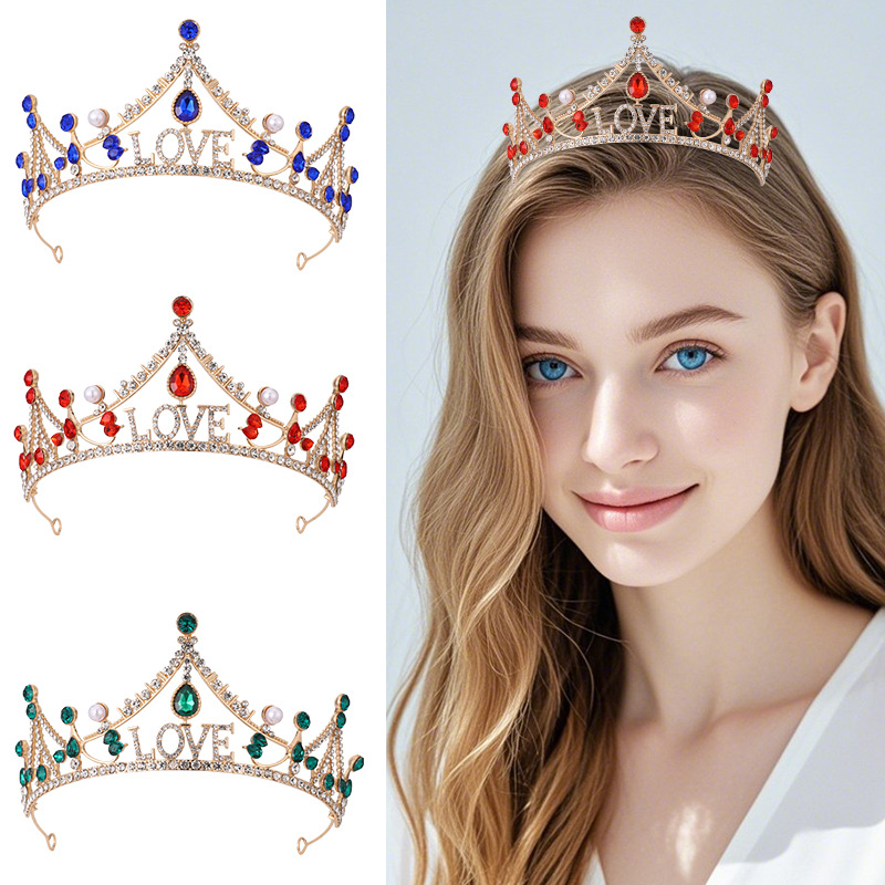 欧式新娘简约皇冠头饰多色合金水钻跨境王冠发饰礼服晚宴发型配饰