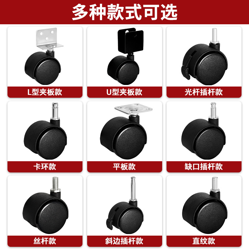 万向脚轮1寸1.5寸2寸家具丝杆脚轮PP塑料轮子置物架活动万向轮