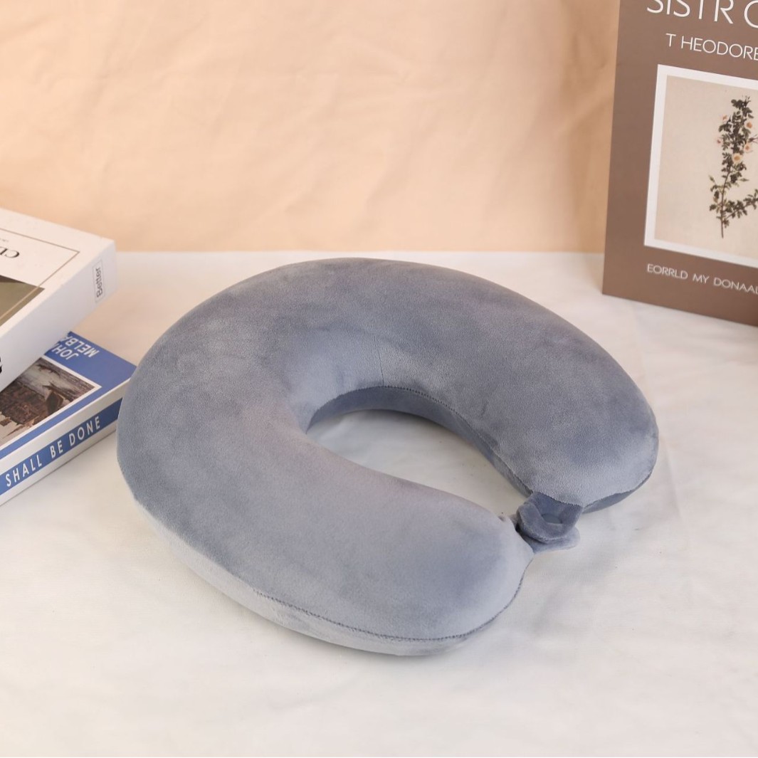 简约商务纯色记忆棉U型枕 康乐屋驼峰磨毛布旅行办公护颈枕批发