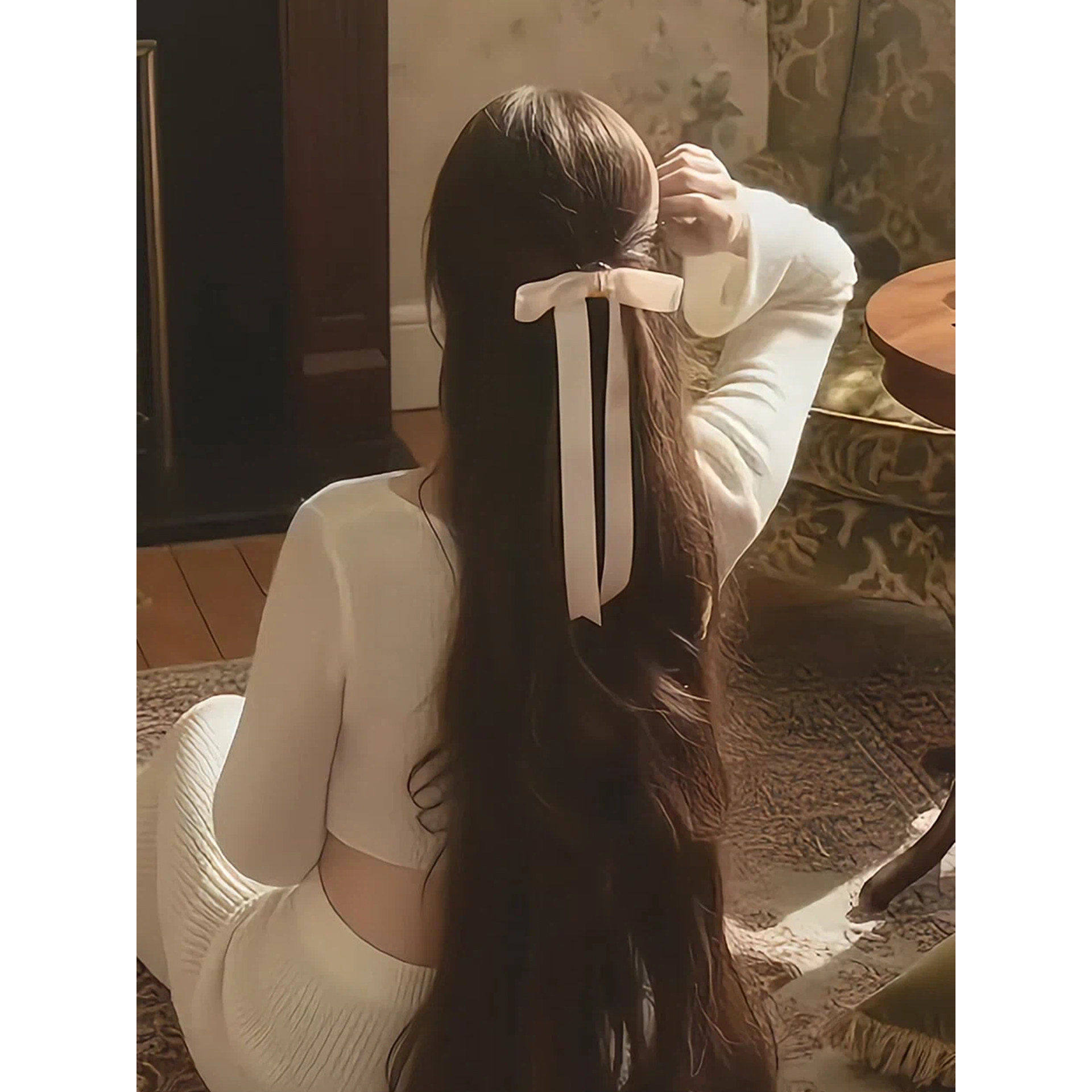 月光纱暮色玫瑰花鸭嘴夹发饰纯欲盘发蝴蝶结丝带发夹女气质显发量