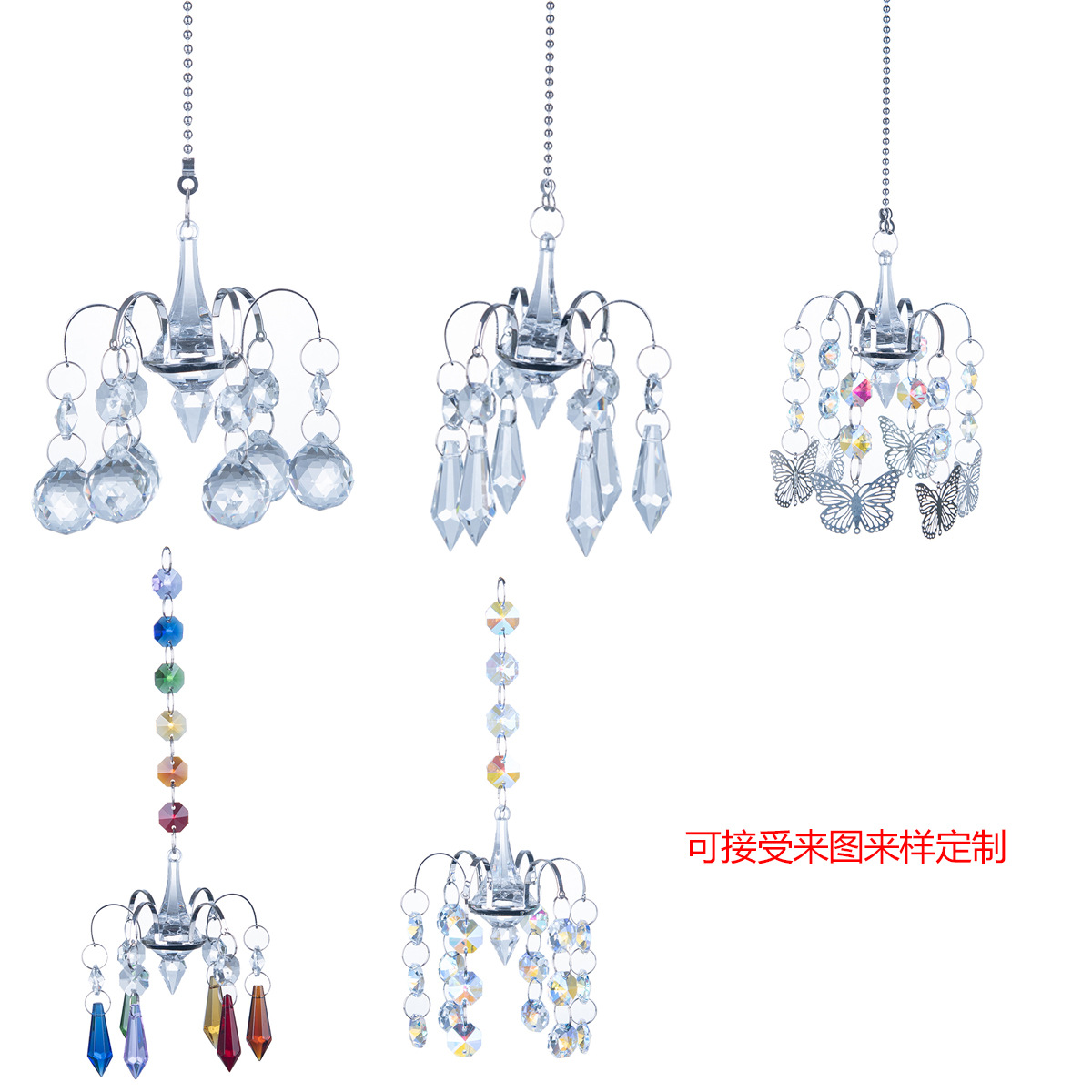新品太阳捕手园艺水晶工艺品亚马逊跨境架子款蝴蝶尖珠灯饰球挂件