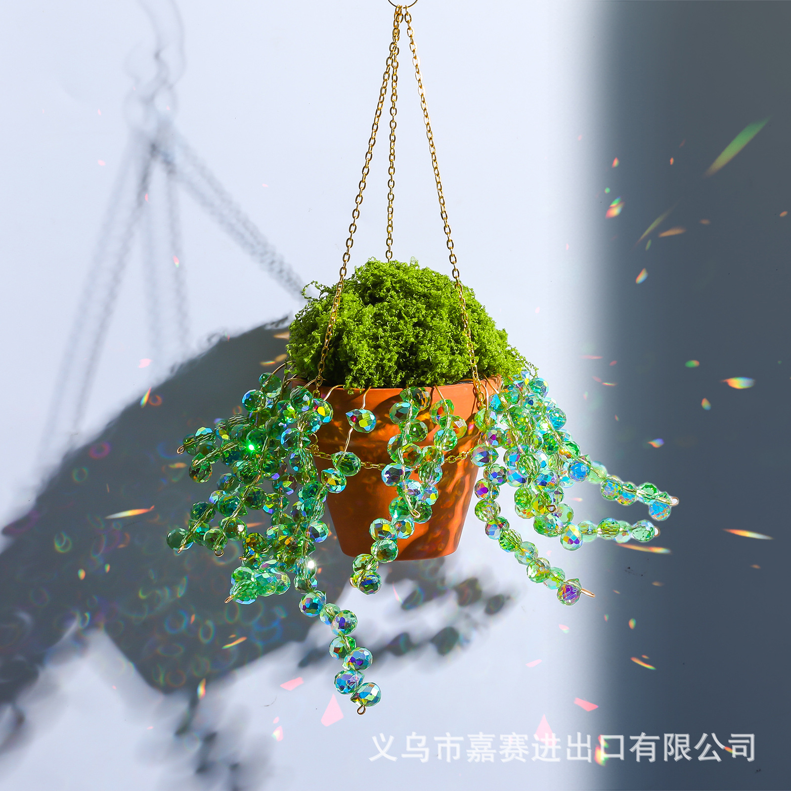 阳光捕手工厂跨境货源复古彩色铁片灯饰球月亮简约七彩珠水晶吊坠