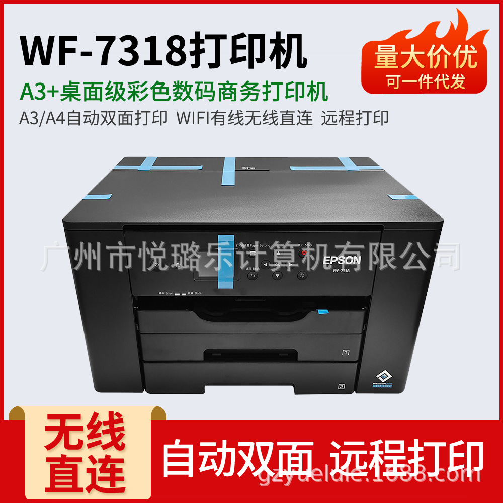 爱普生WF-7318 A3+无线彩色喷墨商务打印机自动双面打印商用/办公