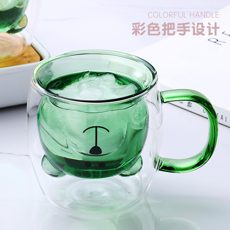 高硼硅玻璃双层杯彩色卡通小熊杯家用咖啡牛奶杯办公室双层玻璃杯