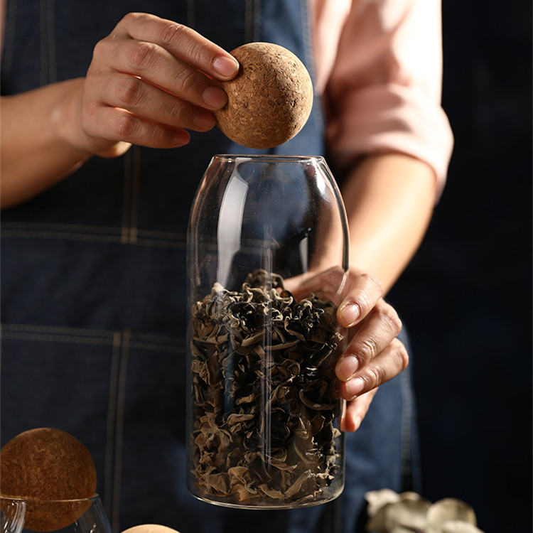 透明直管玻璃收纳密封罐子 多规格玻璃储物罐 软木塞圆球盖茶叶罐