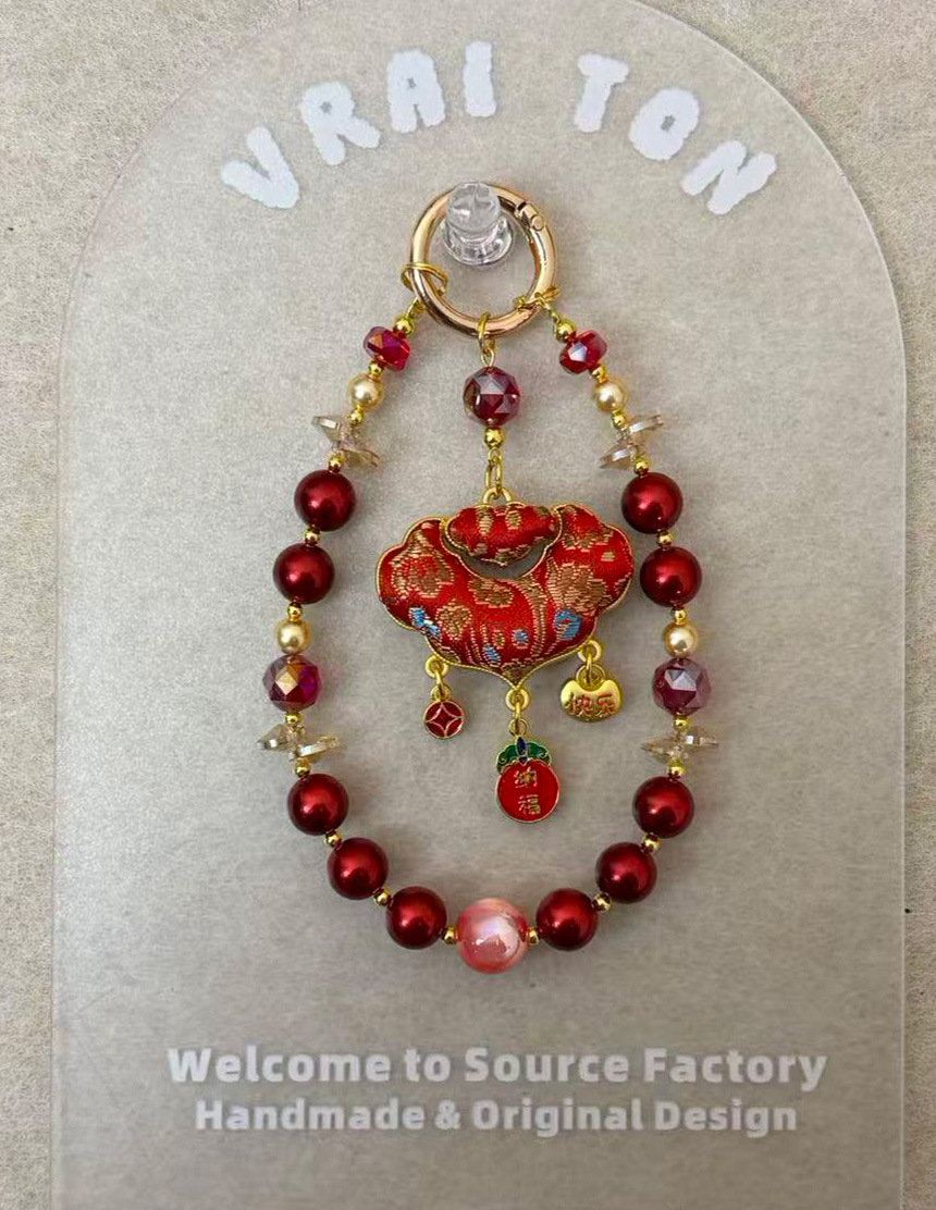 手工diy高端手机挂绳新年双面宋锦平安锁挂件水晶串珠带手机垫片