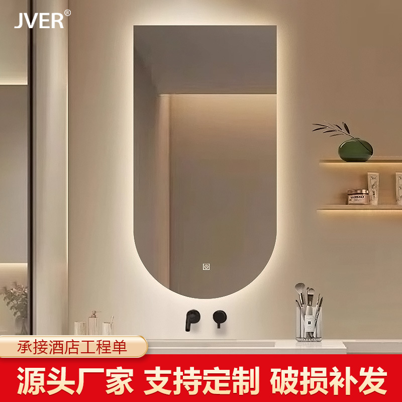 W8法式拱形智能浴室镜壁挂led带灯圆弧发光酒店美容美发店尺寸定