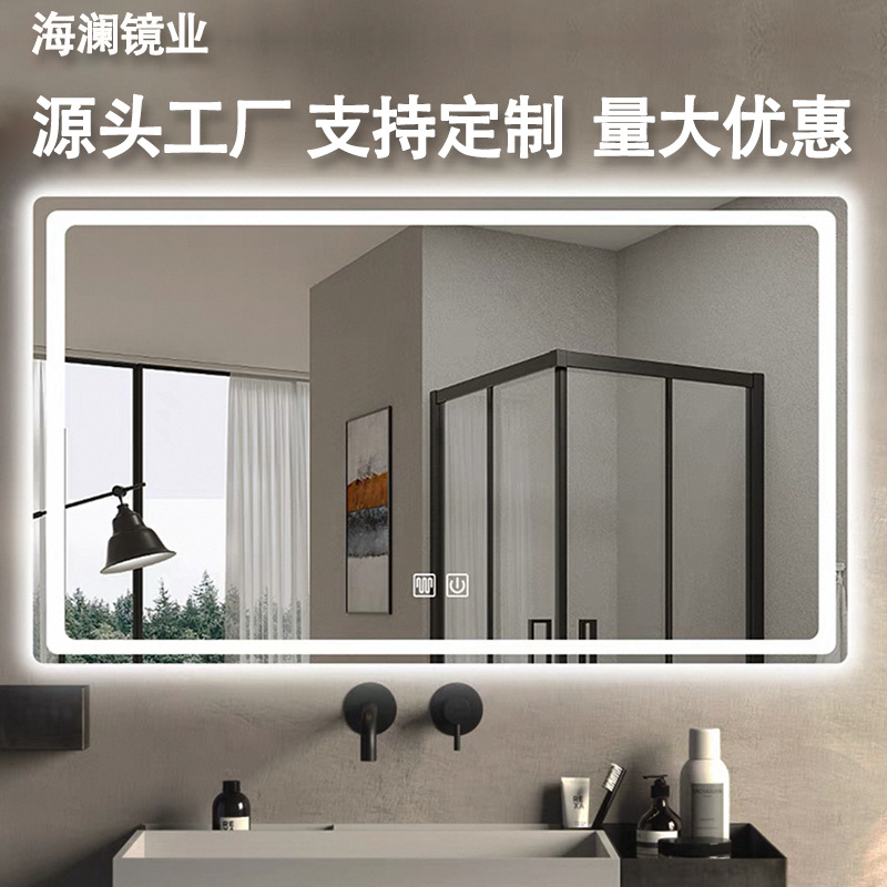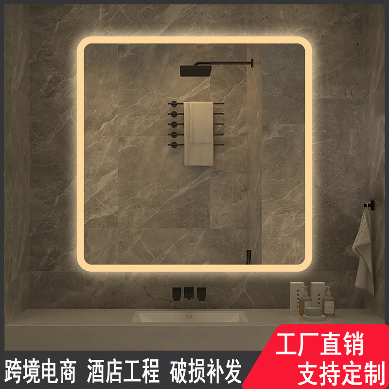 热销酒店浴室镜工程led智能镜带灯发光壁挂防雾方镜触摸屏卫生间